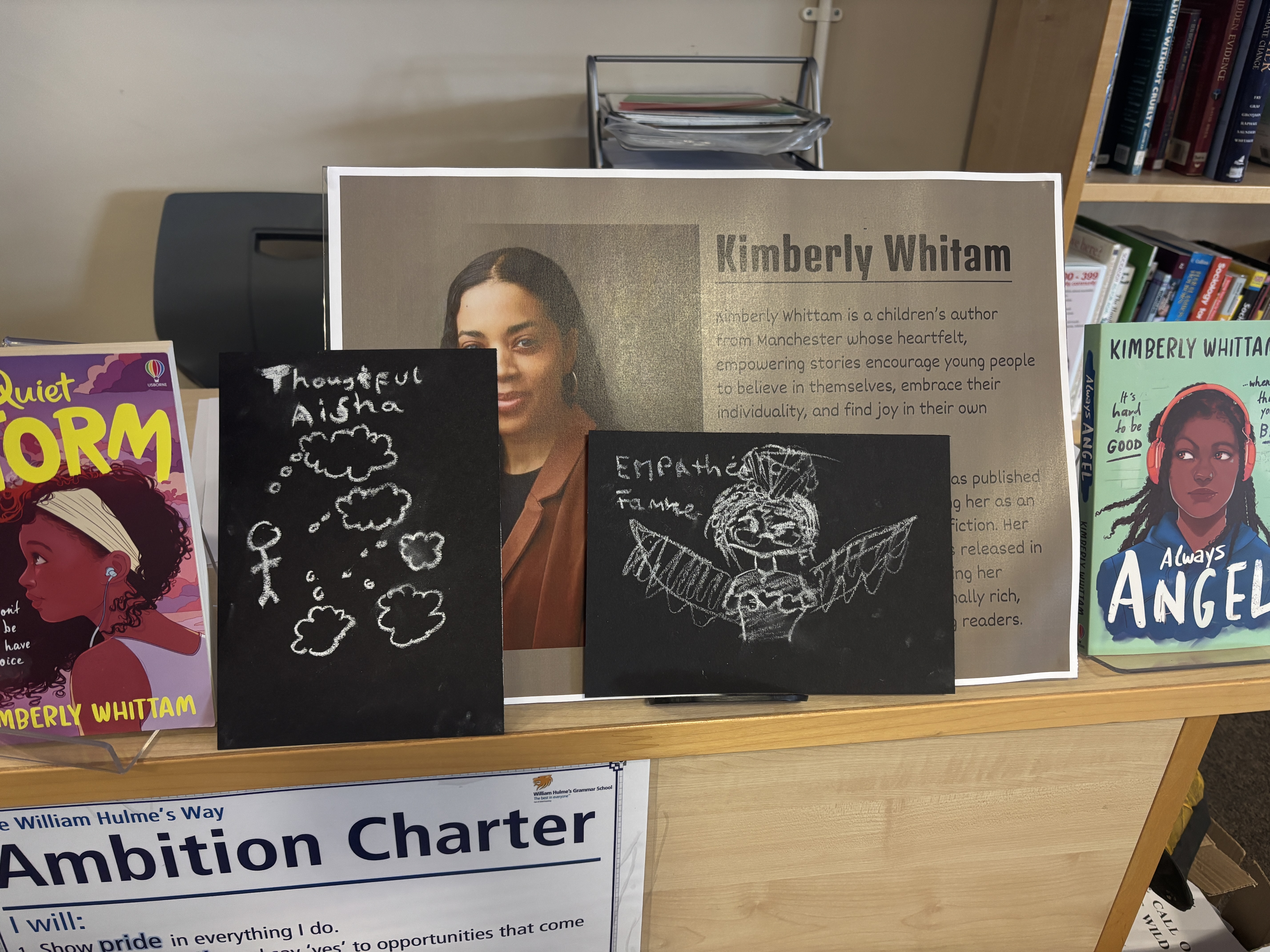 Kimberly, the author of both Quiet Storm and the recently released Always Angel, guided students through a series of creative writing challenges in which the Y8s celebrated their unique cultural identities.