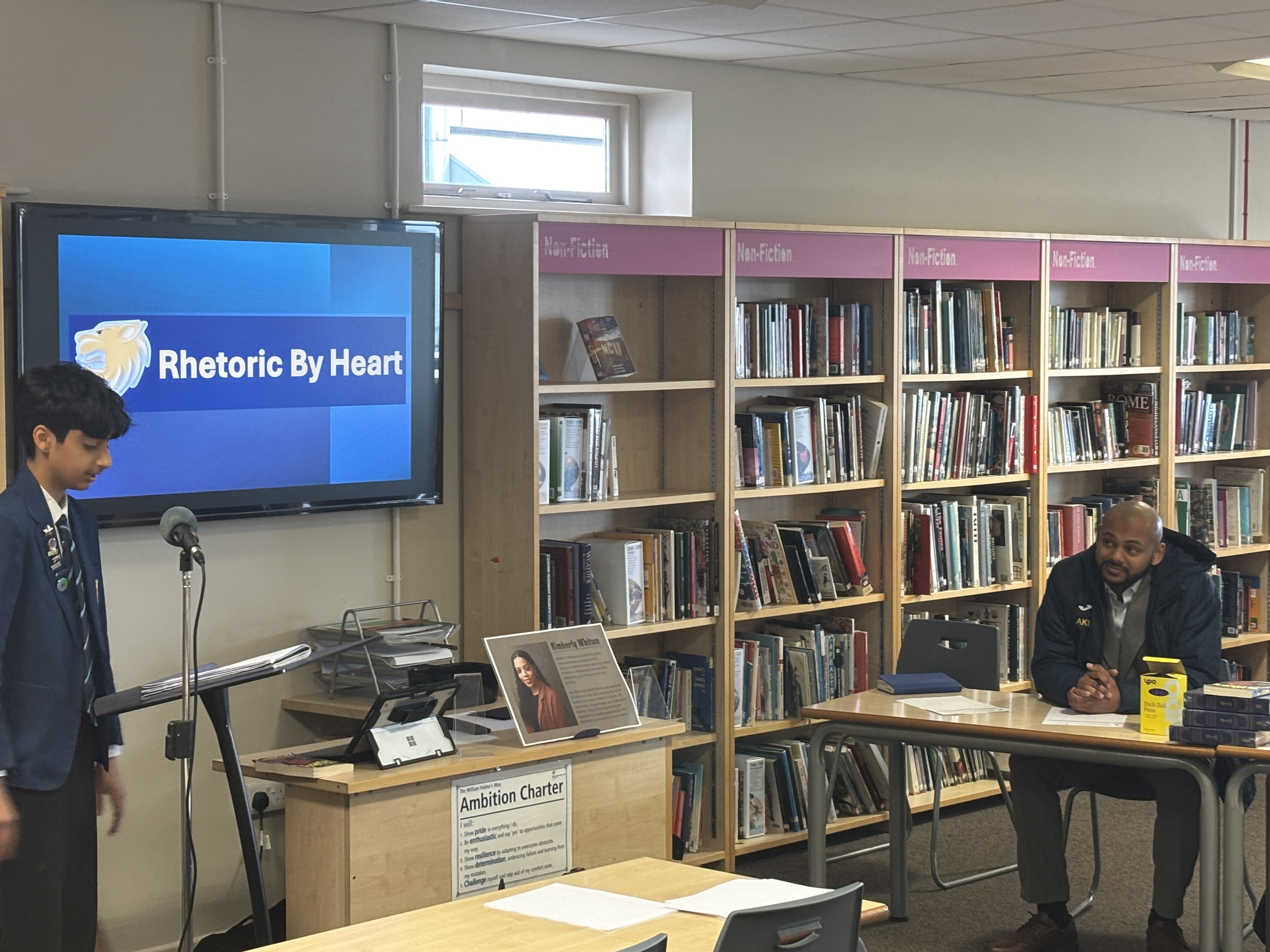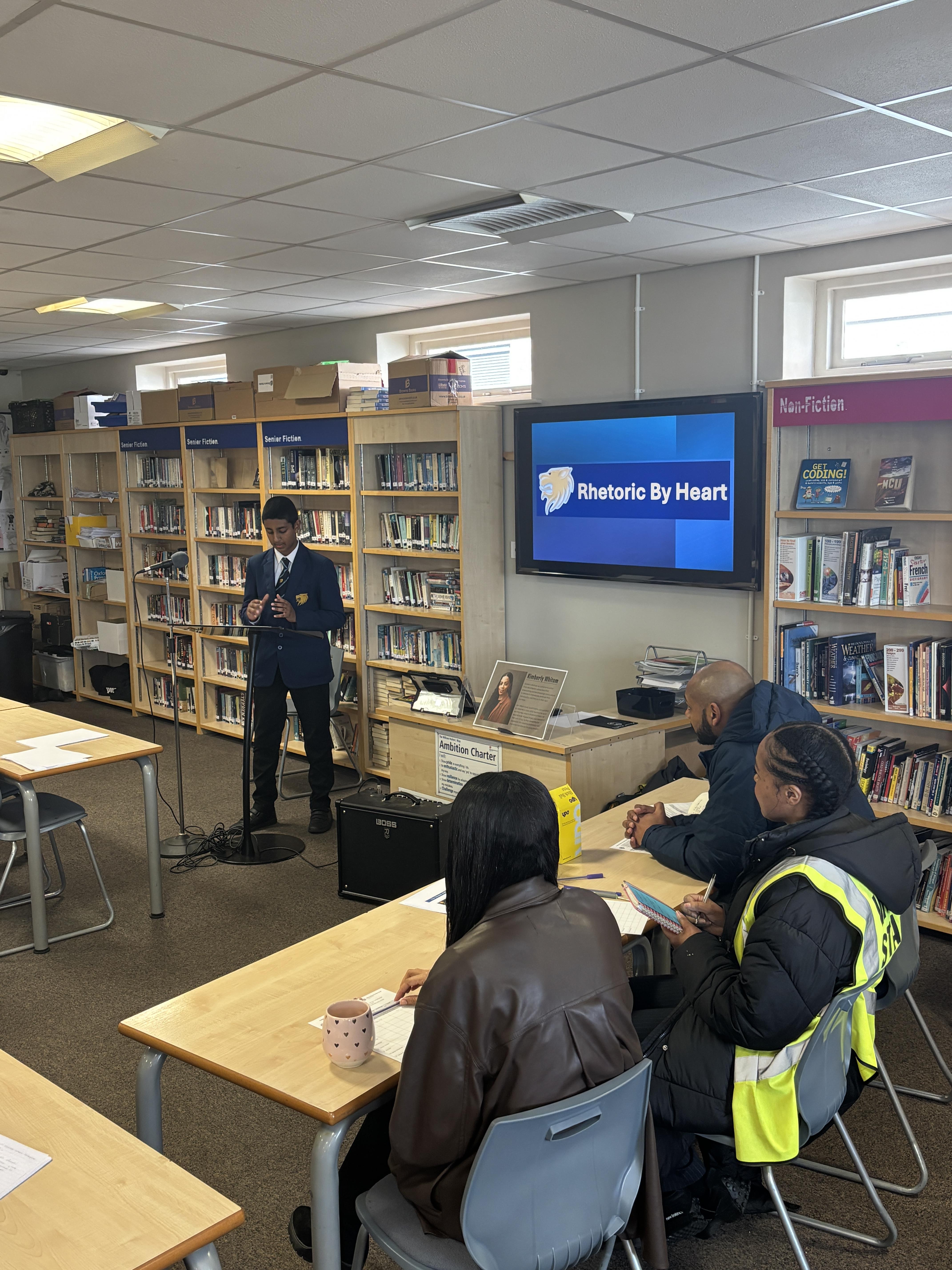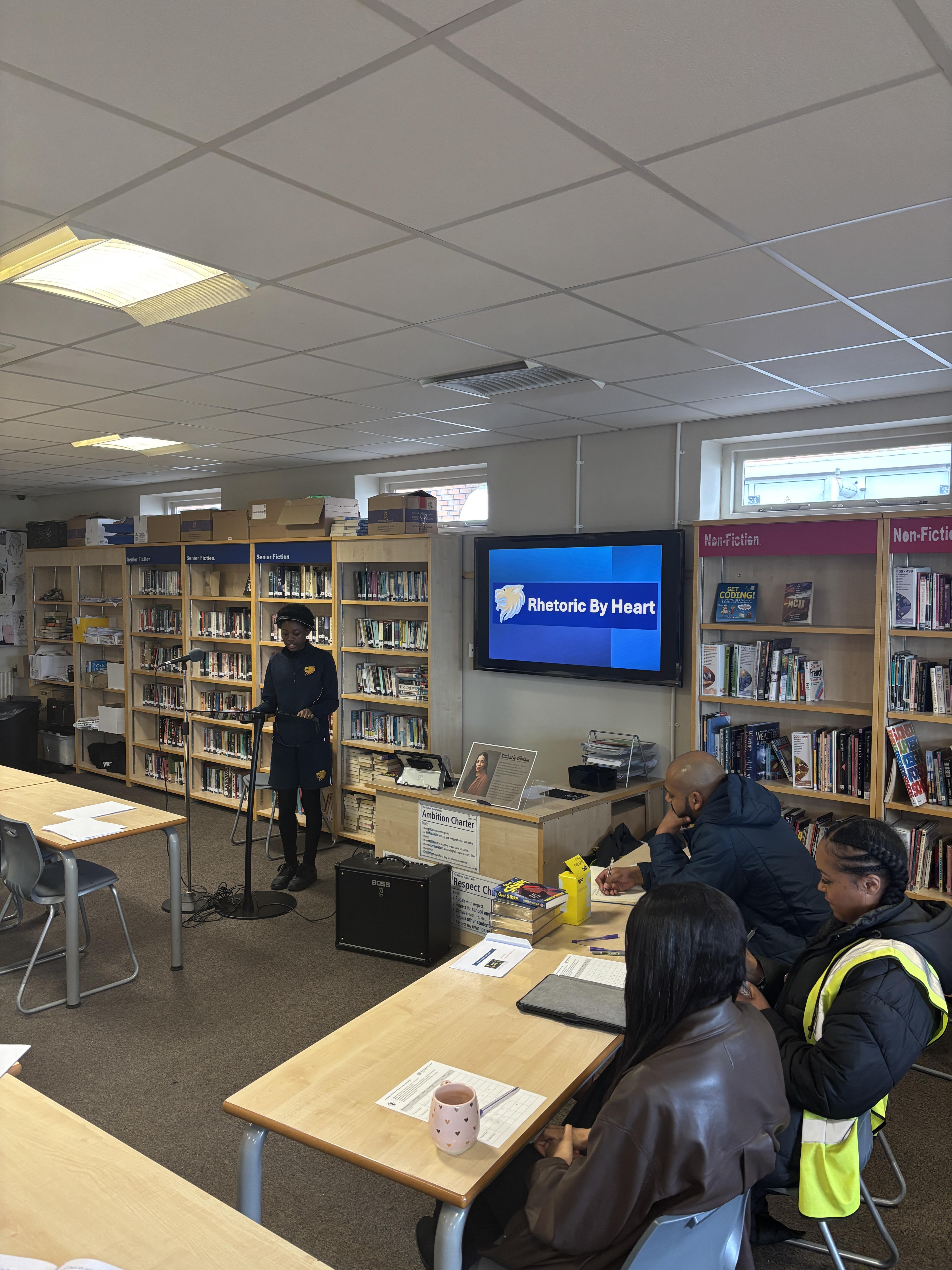Following that, Kimberly – joined by our very own Mr Lemord and Miss Esdaille – judged the annual Rhetoric by Heart Competition, in which students read aloud their social justice speeches that they had crafted in class. The speeches were ranked for clarity, passion, vocabulary vocal projection.