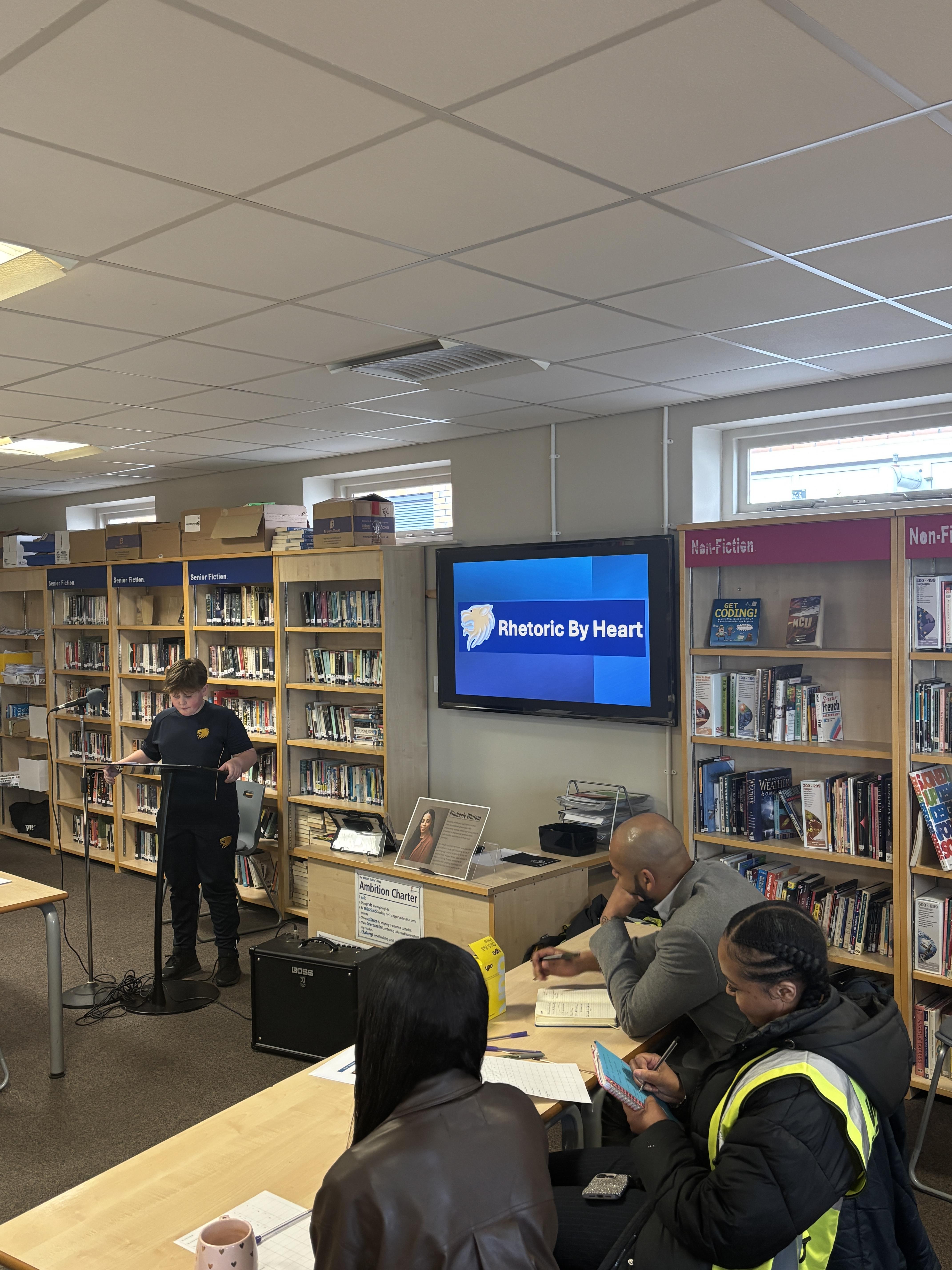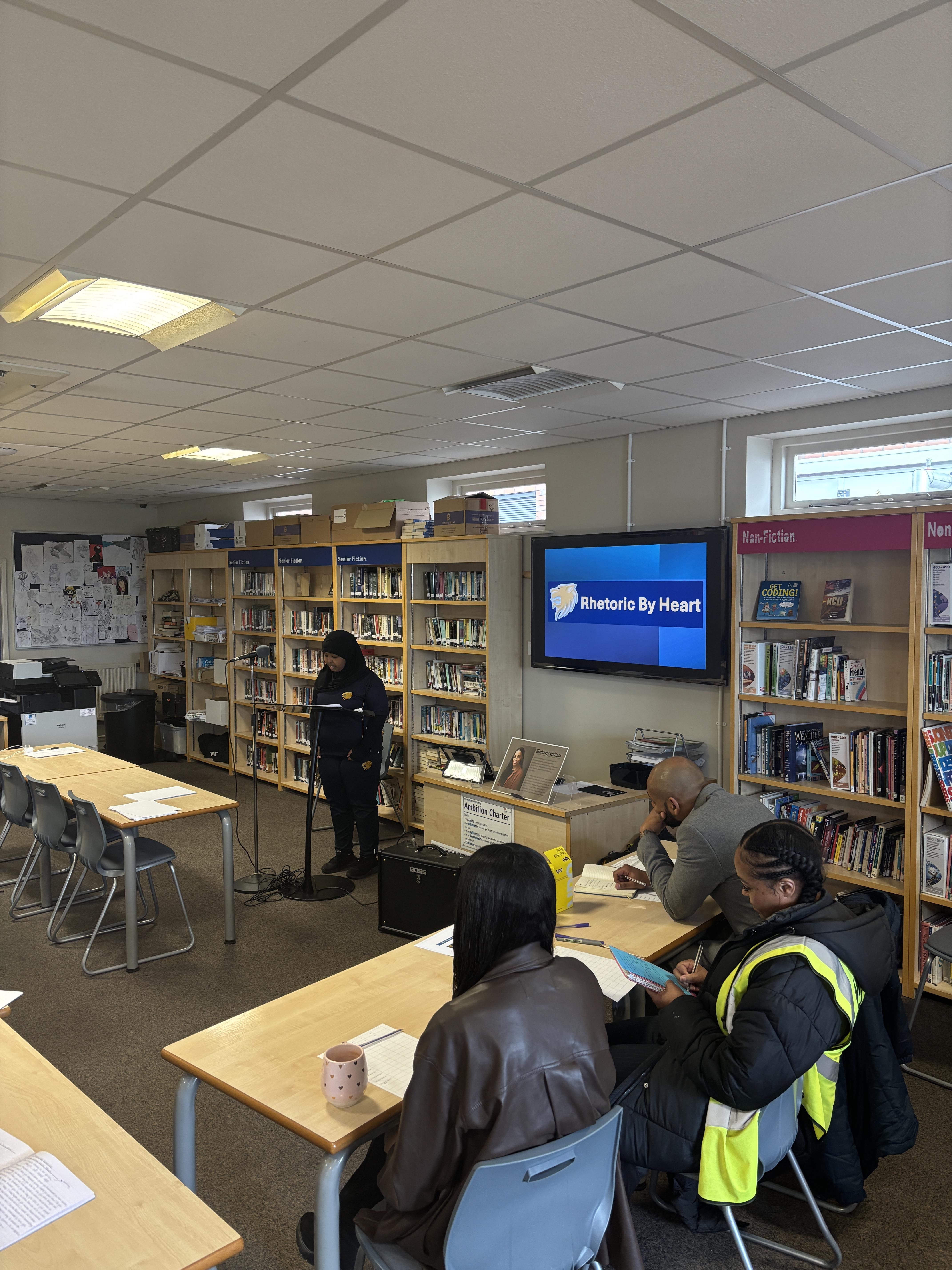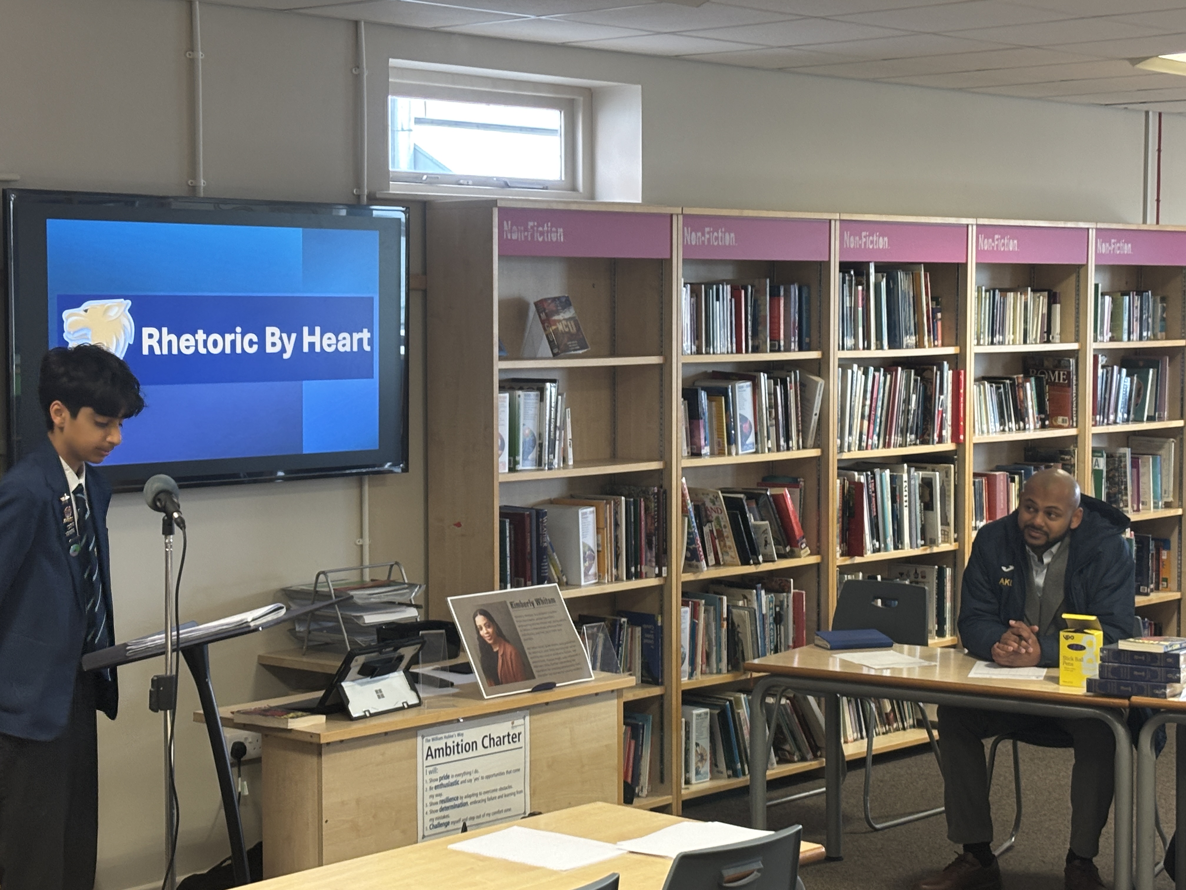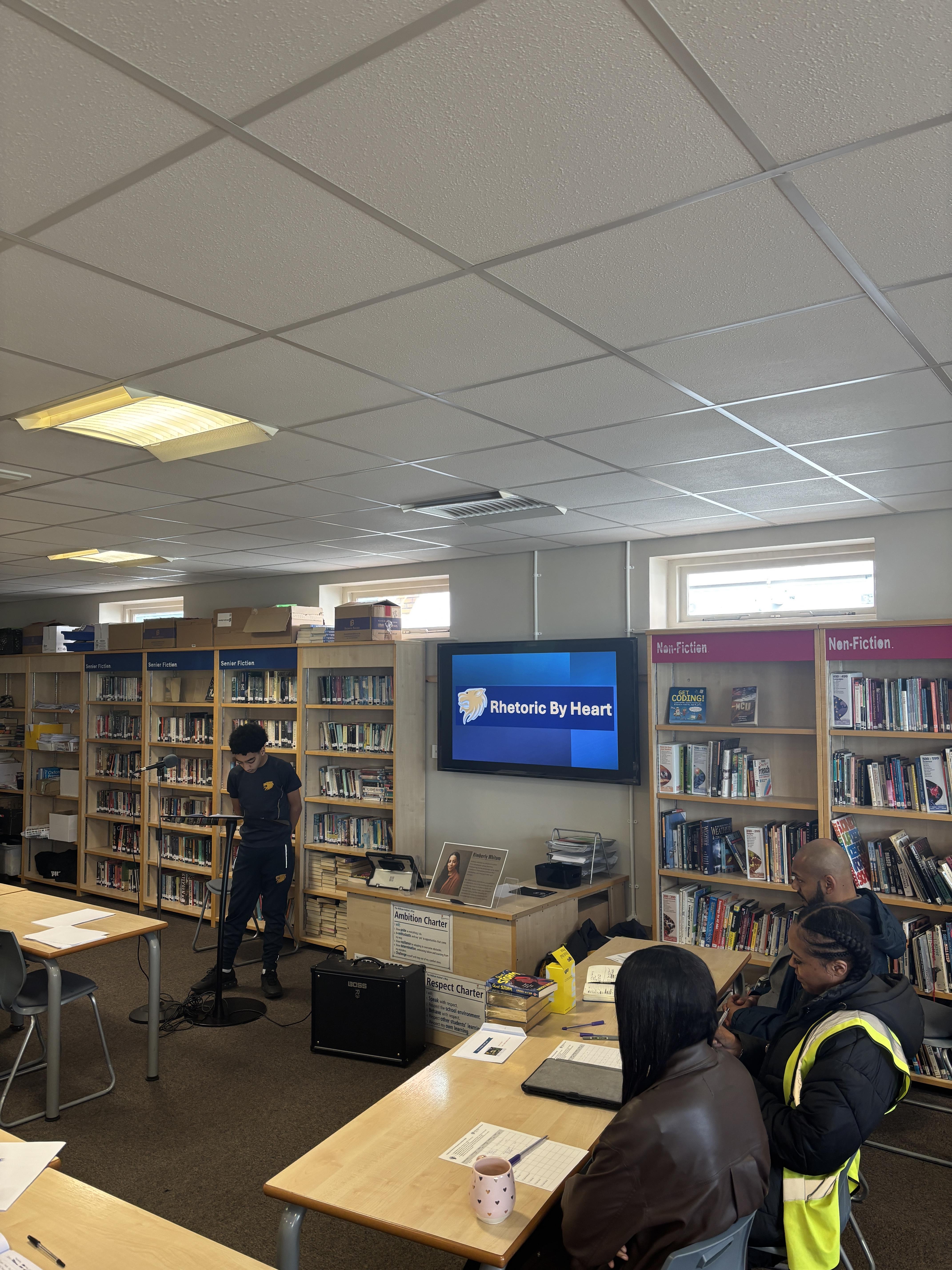 Following that, Kimberly – joined by our very own Mr Lemord and Miss Esdaille – judged the annual Rhetoric by Heart Competition, in which students read aloud their social justice speeches that they had crafted in class. The speeches were ranked for clarity, passion, vocabulary vocal projection.